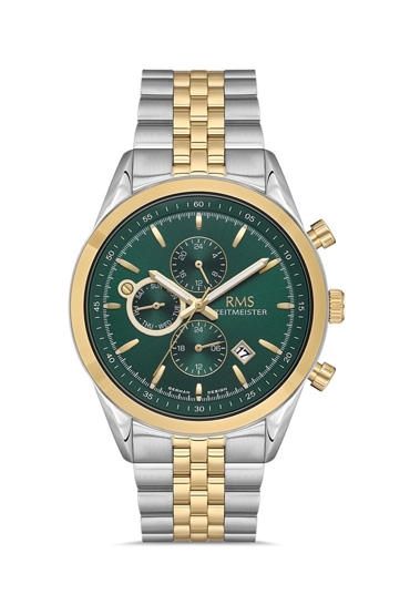 Rms Zeitmeister RMS.1.AG1163.13 Tüm Fonksiyonlar Aktif Kristal Camlı Çelik Kordon Çelik Kasa 5 ATM Suya Dayanıklı Metalik-Altın Renk Erkek Kol Saati Çok Renkli