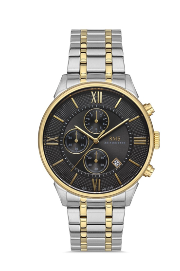 Rms Zeitmeister RMS.1.AG1210.14 Fonksiyonlar Aktif Kristal Cam 5 Atm Suya Dayanıklı Metalik-Altın Renk Erkek Kol Saati Çok Renkli