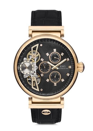 Rms Zeitmeister RMS.1.AG1270.04 Otomatik Mekanizmalı Kristal Camlı Deri Kordonlu Siyah Erkek Kol Saati
