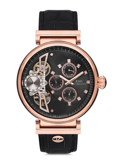 Rms Zeitmeister RMS.1.AG1270.05 Otomatik Mekanizmalı Kristal Camlı Deri Kordonlu Siyah Erkek Kol Saati