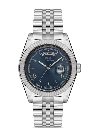 Rms Zeitmeister RMS.1.AG1349.04 Takvim ve Gün Göstergeli Romen Rakamlı 5 Atm Suya Dayanıklı Çelik Kasa Metalik Renk Erkek Kol Saati