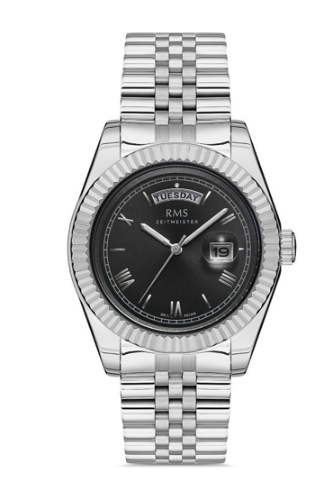 Rms Zeitmeister RMS.1.AG1349.05 Takvim ve Gün Göstergeli Romen Rakamlı 5 Atm Suya Dayanıklı Çelik Kasa Metalik Renk Erkek Kol Saati