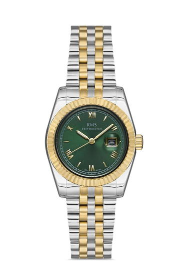 Rms Zeitmeister RMS.1.AG1350.14 Takvimli Romen Rakamlı 5 Atm Suya Dayanıklı Çelik Kasa Metalik-Altın Renk Kadın Kol Saati Çok Renkli