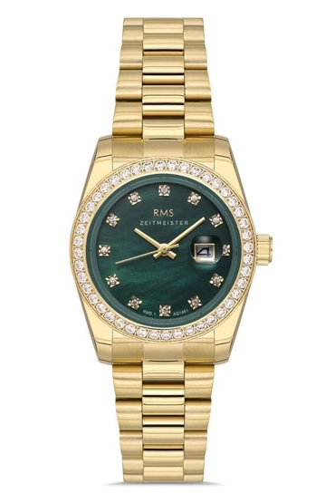 Rms Zeitmeister RMS.1.AG1461.14 Taşlı Tasarım Çelik Kordon 5 ATM Suya Dayanıklı Altın Renk Kadın Kol Saati