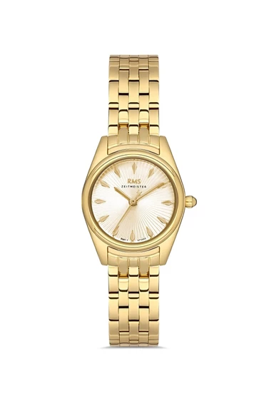 Rms Zeitmeister RMS.1.AG1507.05 Minimal Tasarım Kristal Camlı Çelik Kordon Çelik Kasa 5 ATM Suya Dayanıklı Altın Renk Kadın Kol Saati