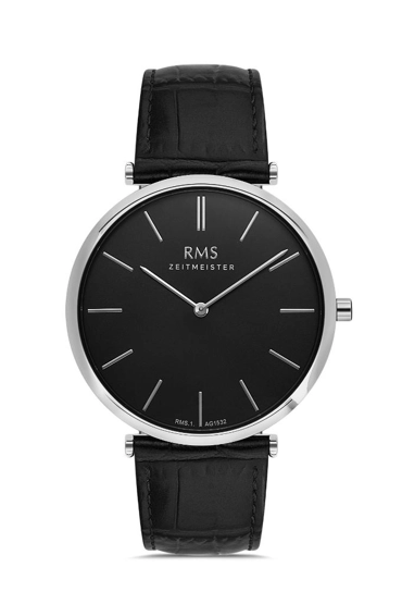 Rms Zeitmeister RMS.1.AG1532.02 Deri Kordonlu Kristal Camlı Suya Dayanıklı Siyah Erkek Kol Saati