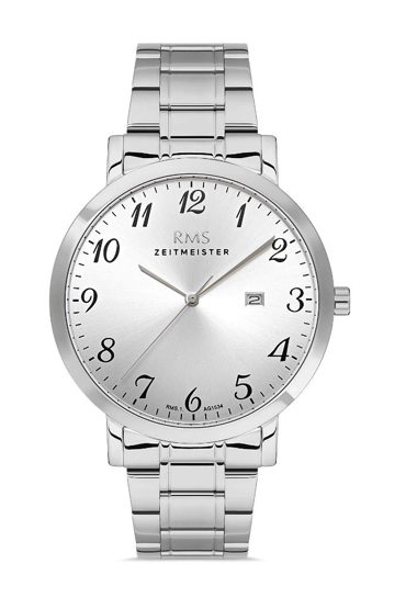 Rms Zeitmeister RMS.1.AG1534.09 Kristal Camlı Suya Dayanıklı Çelik Kordonlu Metalik Renk Erkek Kol Saati