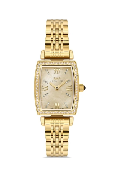 Rms Zeitmeister RMS.1.AG1543.07 Swarovski Taşlı Kristal Camlı Dikdörtgen Kasa Altın Renk Kadın Kol Saati