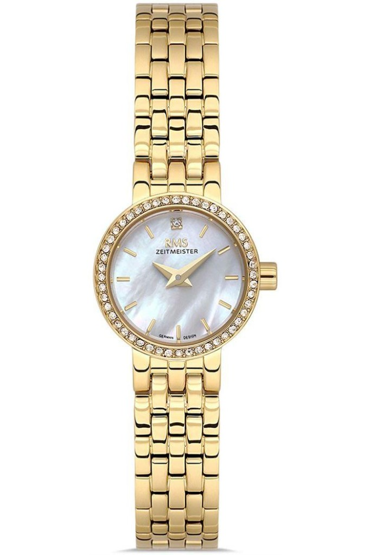 RMS Zeitmeister RMS.1.AG1602.07 Minimal Taşlı Tasarım Safir Camlı Çelik Kordon Çelik Kasa 5 ATM Suya Dayanıklı Altın Renk Kadın Kol Saati