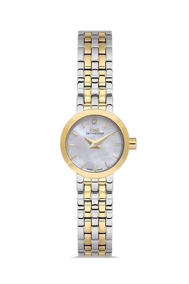 RMS Zeitmeister RMS.1.AG1603.05 Minimal Taşlı Tasarım Sedef Kadran Safir Cam Metalik-Altın Renk Kadın Kol Saati Çok Renkli
