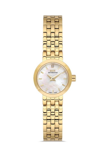 RMS Zeitmeister RMS.1.AG1603.06 Japon Üretimi Mekanizmaya Sahip Minimal Tasarım 5 ATM Suya Dayanıklı Çelik Kordon Altın Renk Kadın Kol Saati