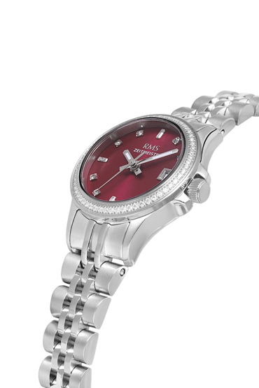 Rms Zeitmeister RMS.1.AG1604.04 Taşlı Tasarım Safir Cam Çelik Kordon Çelik Kasa 5 ATM Suya Dayanıklı Metalik Renk Kadın Kol Saati