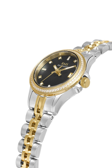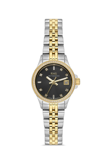 Rms Zeitmeister RMS.1.AG1604.08 Taşlı Tasarım Safir Cam Çelik Kordon Çelik Kasa 5 ATM Suya Dayanıklı Metalik-Altın Renk Kadın Kol Saati