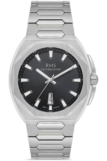 Rms Zeitmeister RMS.1.AG1619.03 Tasarım Kadranlı Kristal Camlı Çelik Kordon Çelik Kasa 5 ATM Suya Dayanıklı Metalik Renk Erkek Kol Saati