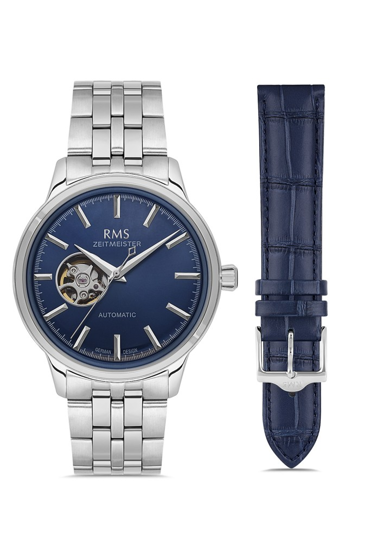 Rms Zeitmeister RMS.1.AG1637.03 Otomatik Mekanizmalı Kristal Camlı Çelik Kordon Çelik Kasa 5 ATM Suya Dayanıklı Metalik Renk Erkek Kol Saati Çok Renkli
