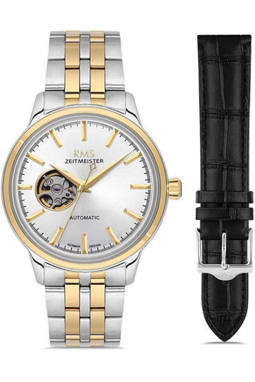 Rms Zeitmeister RMS.1.AG1637.06 Otomatik Mekanizmalı Kristal Camlı Çelik Kordon Çelik Kasa 5 ATM Suya Dayanıklı Metalik-Altın Renk Erkek Kol Saati Çok Renkli