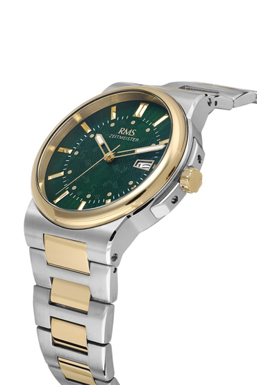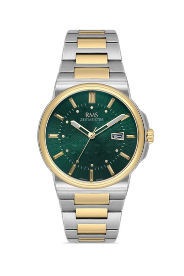 RMS Zeitmeister RMS.1.AG1638.08 Kristal Camlı Çelik Kordon Çelik Kasa 5 ATM Suya Dayanıklı Metalik-Altın Renk Erkek Kol Saati Çok Renkli