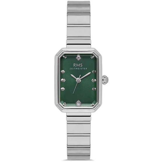 RMS Zeitmeister RMS.1.AG2050.02 Taşlı Tasarım Kristal Camlı Dikdörtgen Kadran Çelik Kordon Çelik Kasa 5 ATM Suya Dayanıklı Metalik Renk Kadın Kol Saati