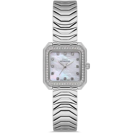 RMS Zeitmeister RMS.1.AG2051.01 Taşlı Tasarım Kristal Camlı Kare Kadran Çelik Kordon Çelik Kasa 5 ATM Suya Dayanıklı Metalik Renk Kadın Kol Saati