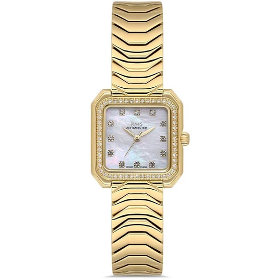 RMS Zeitmeister RMS.1.AG2051.03 Taşlı Tasarım Kristal Camlı Kare Kadran Çelik Kordon Çelik Kasa 5 ATM Suya Dayanıklı Altın Renk Kadın Kol Saati