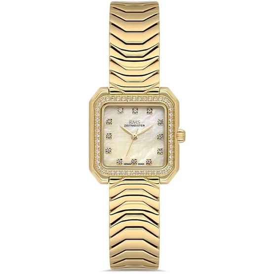 RMS Zeitmeister RMS.1.AG2051.04 Taşlı Tasarım Kristal Camlı Kare Kadran Çelik Kordon Çelik Kasa 5 ATM Suya Dayanıklı Altın Renk Kadın Kol Saati