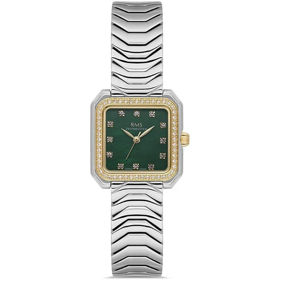 RMS Zeitmeister RMS.1.AG2051.06 Taşlı Tasarım Kristal Camlı Kare Kadran Çelik Kordon Çelik Kasa 5 ATM Suya Dayanıklı Metalik Renk Kadın Kol Saati