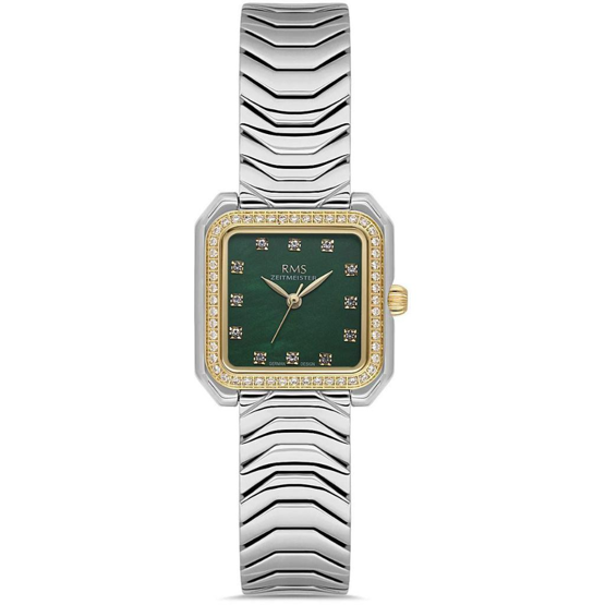 RMS Zeitmeister RMS.1.AG2051.06 Taşlı Tasarım Kristal Camlı Kare Kadran Çelik Kordon Çelik Kasa 5 ATM Suya Dayanıklı Metalik Renk Kadın Kol Saati Çok Renkli
