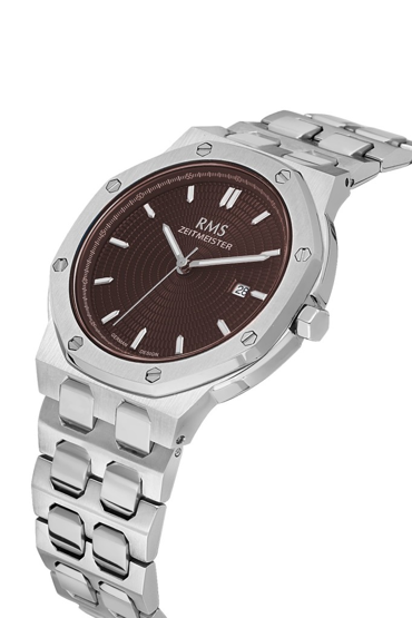 Rms Zeitmeister RMS.1.AG2052.05 Kristal Camlı Çelik Kordon Çelik Kasa 5 ATM Suya Dayanıklı Metalik Renk Erkek Kol Saati