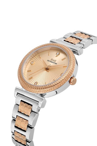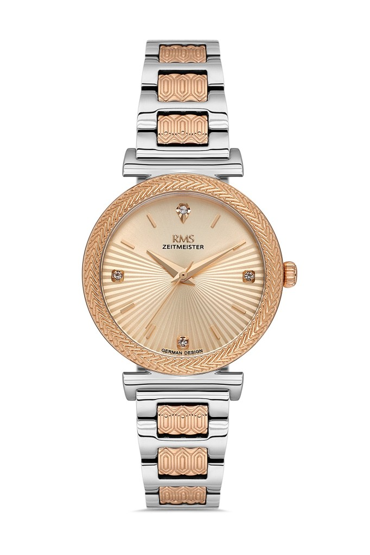 Rms Zeitmeister RMS.1.AG2137.56 Taşlı Tasarım Çelik Kasa Çelik Kordon Metalik-RoseGold Kadın Kol Saati