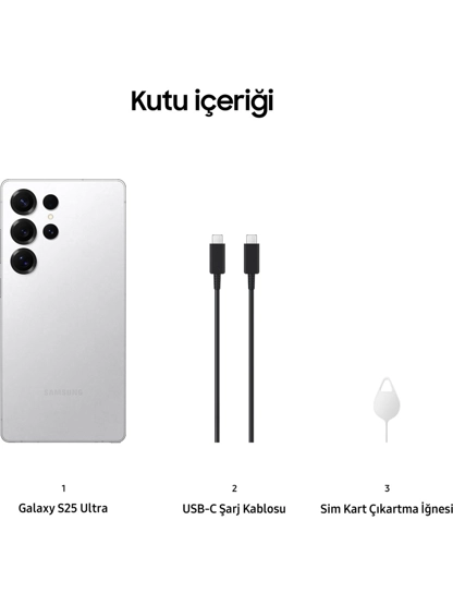 Samsung Galaxy S25 Ultra 12GB Ram 256GB Hafıza, 6,9'' 120 hz ekran Snap Dragon işlemci , 2000 Mp Ana Kamera 12 Mp Selfie Kamerası, metal dayanıklı kasa yapısı, IP68 suya toza dayanıklılık sertifikası, 5000 mAh pil kapasitesi