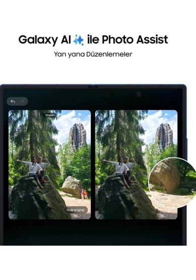İster katlanmış ister açık olsun, Galaxy Z Fold7 bir akıllı telefondan beklentilerinizi aşar. Genişletilmiş 21:9 kapak ekranı ve daha da şık formuyla tutması ve yazması her zamankinden daha kolay, böylece işlerinizi rahatça halledebilirsiniz. Ve 8 inç genişliğindeki ana ekranıyla Galaxy akıllı telefonlar arasında en geniş ekrana sahiptir.