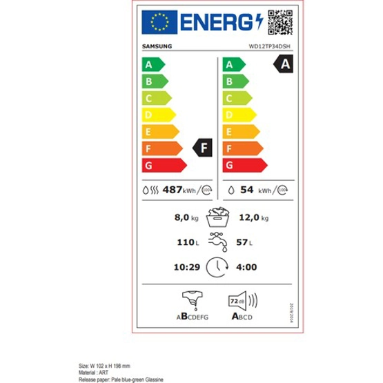 Samsung WD12TP34DSH/AH 1400 Devir 12 kg Yıkamalı 8 kg Kurutmalı Çamaşır Makinesi Beyaz