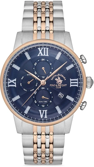 Santa Barbara Polo Racquet Club SB.1.10158.3 Tüm Fonksiyonları Aktif 5 ATM Suya Dayanıklı Çelik Kordonlu Metalik Renk Erkek Kol Saati Çok Renkli