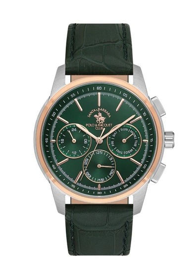 Santa Barbara Polo SB.1.10514.5 Tüm Fonksiyonları Aktif Deri Kordon Çelik Kasa 5 ATM Suya Dayanıklı Yeşil Renk Erkek Kol Saati