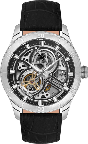 Santa Barbara Polo Racquet Club SB.1.10573-1 Otomatik Mekanizmalı Deri Kordonlu Suya Dayanıklı Siyah Erkek Kol Saati