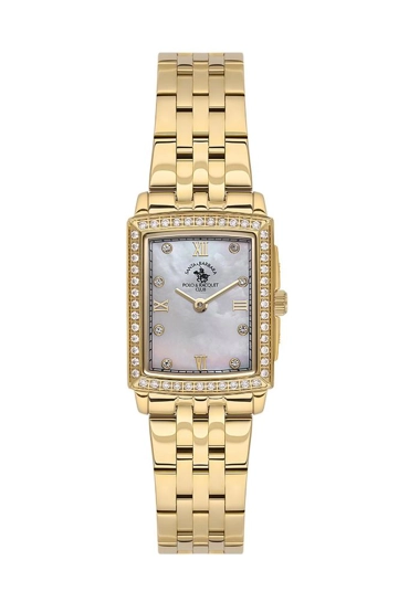 Santa Barbara Polo Racquet Club SB.1.10574-2 Dikdörtgen Kadran Taşlı Tasarım Altın Kadın Kol Saati
