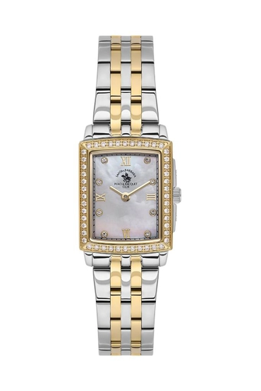 Santa Barbara Polo Racquet Club SB.1.10574-4 Dikdörtgen Kadran Taşlı Tasarım Metalik-Altın Kadın Kol Saati