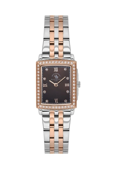 Santa Barbara Polo Racquet Club SB.1.10574-5 Dikdörtgen Kadran Taşlı Tasarım Metalik-Bronz Kadın Kol Saati
