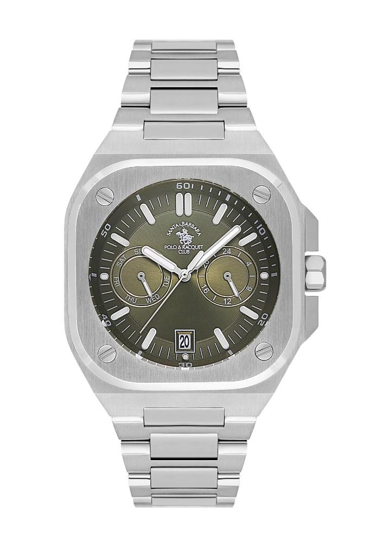 Santa Barbara Polo Racquet Club SB.1.10576-3 Kare Kadranlı Tüm Fonksiyonları Aktif Çelik Kordonlu Suya dayanıklı Metalik Renk Erkek Kol Saati Çok Renkli
