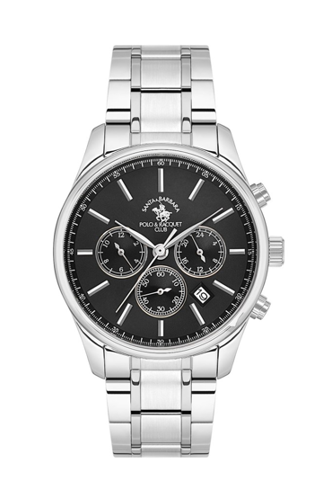 Santa Barbara Polo Racquet Club SB.1.10580-1 Tüm Fonksiyonlar Aktif Çelik Kordon Çelik Kasa 5 ATM Suya Dayanıklı Metalik Renk Erkek Kol Saati