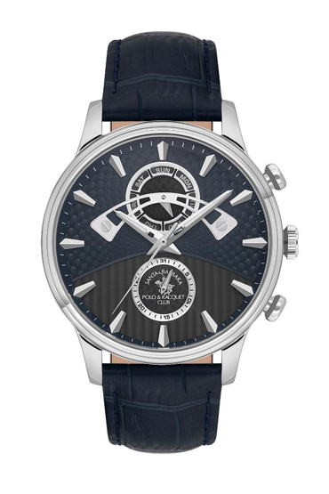 Santa Barbara Polo Racquet Club SB.1.10593-3 Deri Kordonlu Tüm Fonksiyonları Aktif Suya Dayanıklı Lacivert Erkek Kol Saati Çok Renkli