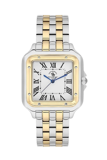 Santa Barbara Polo Racquet Club SB.1.10599-5 Klasik Tasarım Romen Rakamlı Çelik Kordonlu Suya Dayanıklı Altın-Metalik Renk Erkek Kol Saati Çok Renkli