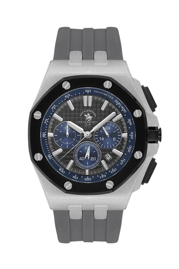 Santa Barbara Polo Racquet Club SB.1.10601-4 Silikon Kordonlu Tüm Fonksiyonları Aktif Suya Dayanıklı Gri Erkek Kol Saati