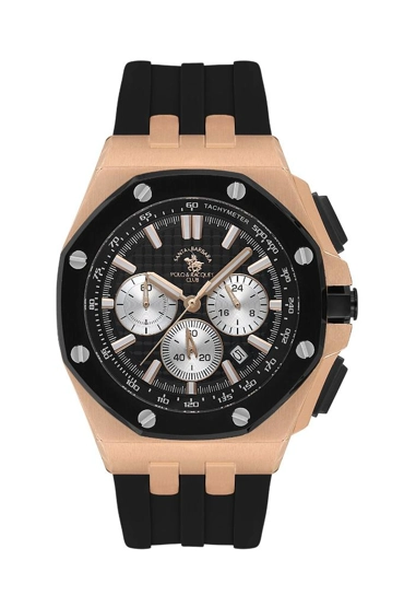 Santa Barbara Polo Racquet Club SB.1.10601-5 Silikon Kordonlu Tüm Fonksiyonları Aktif Suya Dayanıklı Siyah Erkek Kol Saati