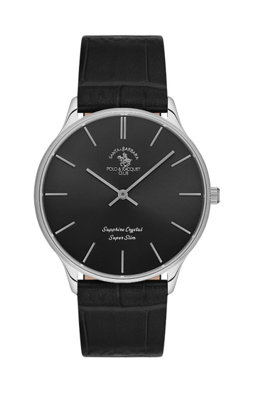 Santa Barbara Polo Racquet Club SB.1.10603-2 Deri Kordonlu Çizilmez Safir Camlı Suya Dayanıklı İnce Kasalı Siyah Erkek Kol Saati Çok Renkli