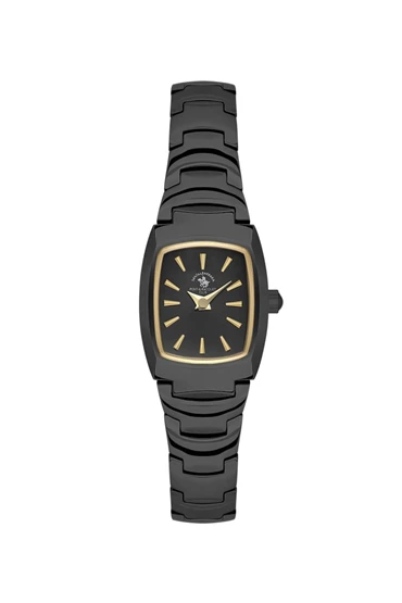 Santa Barbara Polo Racquet Clup SB.1.10639-6 Dikdörtgen Kadran Çelik Kordon Çelik Kasa 5 ATM Suya Dayanıklı Siyah Renk Kadın Kol Saati