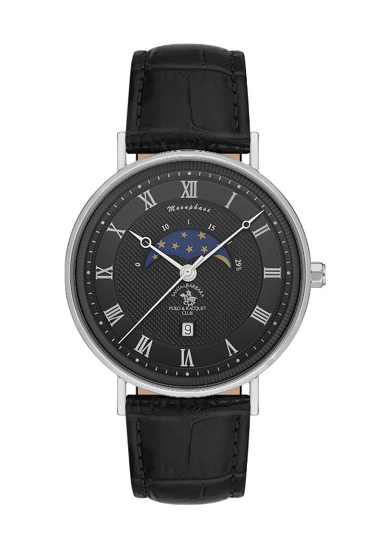 Santa Barbara Polo Racquet Club SB.4.10014-2 Deri Kordonlu Tüm Fonksiyonları Aktif Suya Dayanıklı Siyah Erkek Kol Saati Çok Renkli