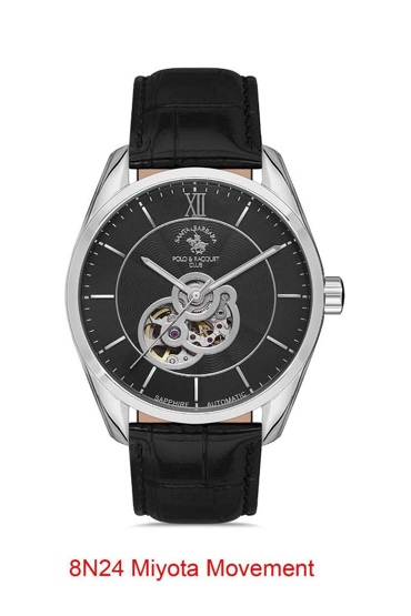 Santa Barbara Polo SB.4.1008.2 Miyota Japon Otomatik Mekanizmaya Sahip Deri Kordon Çelik Kasa 5 ATM Suya Dayanıklı Siyah Erkek Kol Saati