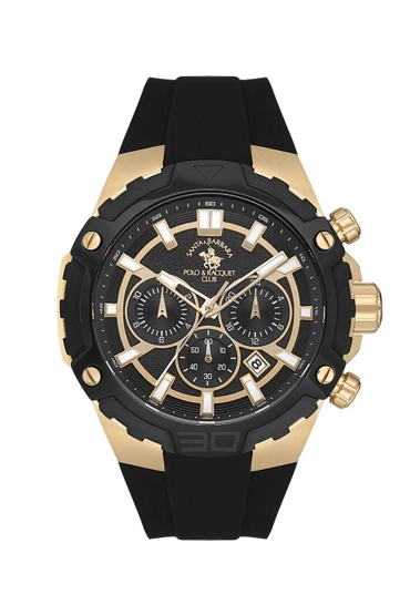 Santa Barbara Polo Racquet Club SB.5.10002-5 Silikon Kordonlu Tüm Fonksiyonları Aktif Suya Dayanıklı Siyah Erkek Kol Saati