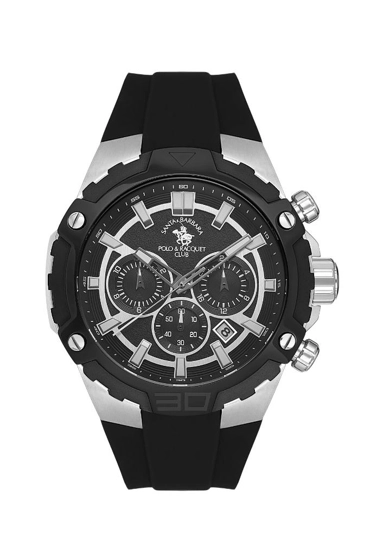 Santa Barbara Polo Racquet Club SB.5.10002.2 Silikon Kordonlu Tüm Fonksiyonları Aktif Suya Dayanıklı Siyah Erkek Kol Saati